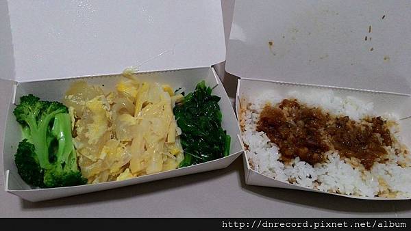 和朋友一起買,買了兩份肉燥飯(25元*2),一份白飯(?),一碗苦瓜排骨湯(50元)