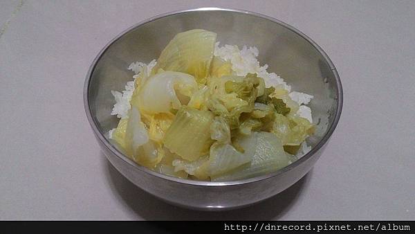 這個是家樂福買的白菜(19元)不加水丟電鍋一直煮一直煮,煮的爛爛的配飯就很好吃啦:)